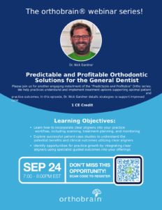 Join orthobrain® and Dr. Lee Hendricks for an informative and engaging webinar featuring ways to more consistently identify, treatment plan and deliver successful clear aligner cases.